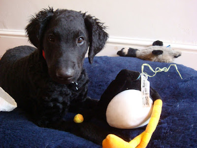 This is Luna a 14 week old curly coated retriever. She's the new pup of my parents friends sister. They were saying something about meeting this one. Humph.